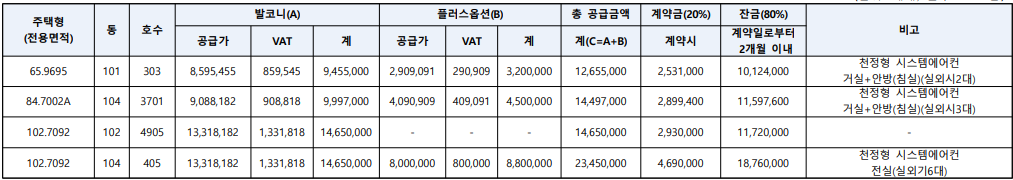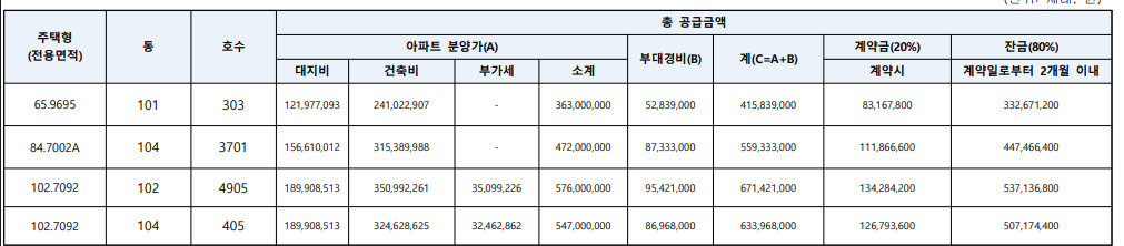 3. 동탄역 롯데캐슬 분양가(부대경비 포함)
