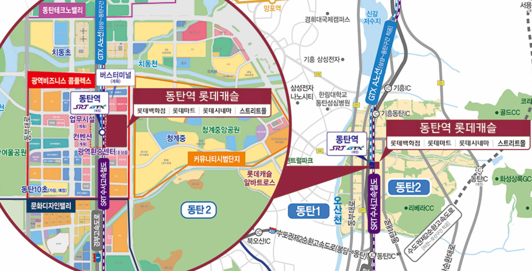 동탄역 롯데캐슬은 SRT 노선, GTX-A 노선이 지나가는 동탄역 바로 앞에 초역세권입니다.