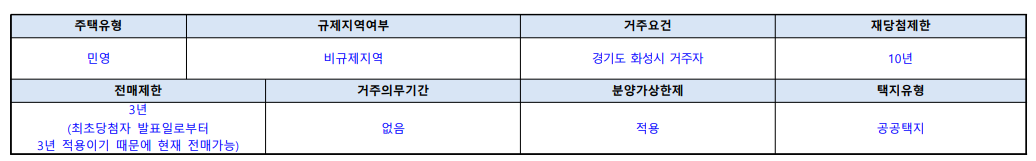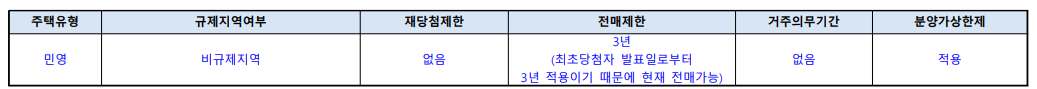 전매제한 : 없음(최초당첨자 발표일로부터 3년 적용 기이 때문에 현재는 없음)